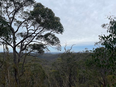 I strolled on and spotted a bench seat. Normally I would hustle straight past it, but today I stopped and took a seat. Solid views even though the sky was still overcast. I'd travelled a ways, but I needed to go a little further.