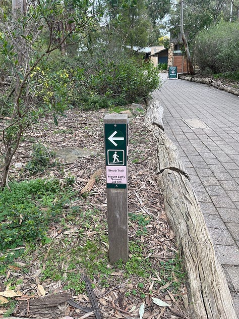 The Steub Trail begins at Cleland Wildlife Park and steadily winds its way up to the Mount Lofty Summit. On trail #3 I did Mount Lofty to Waterfall Gully, and the Steub Trail runs up the other side and across Mount Lofty to get to the same finishing point. A comfortable metre-wide gravel trail steadily winds it's way up, giving you plenty of time to focus on each step and think.